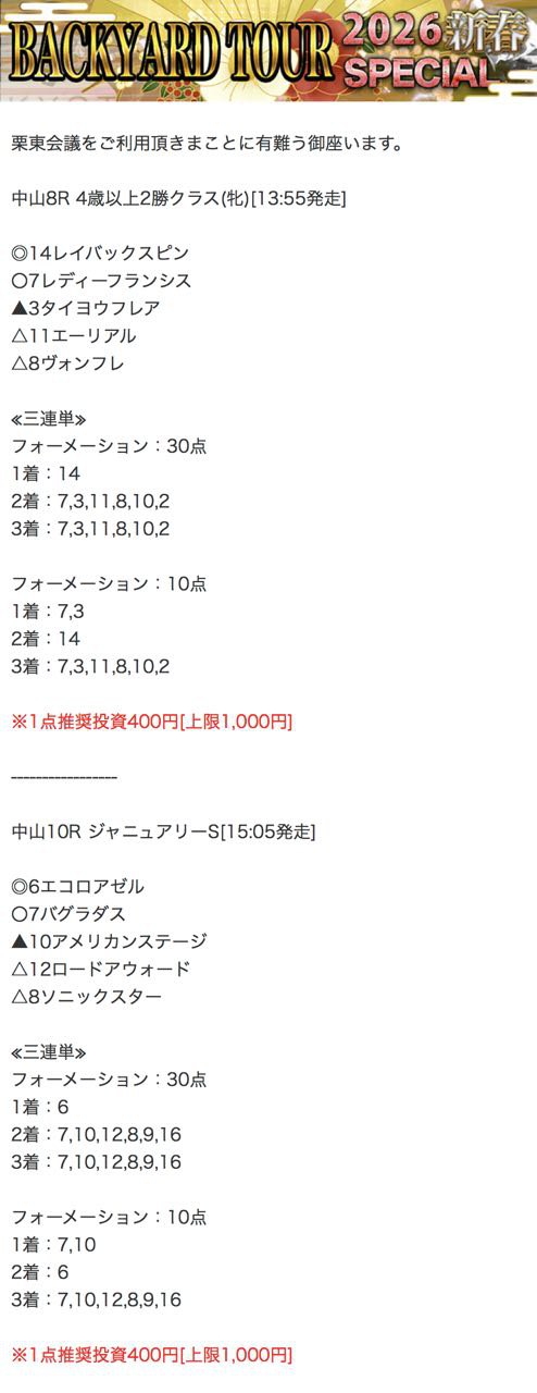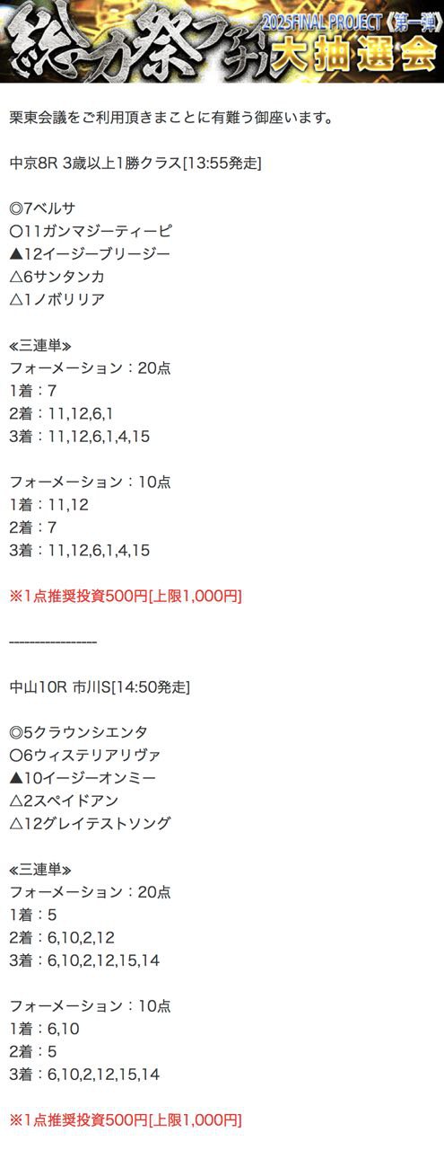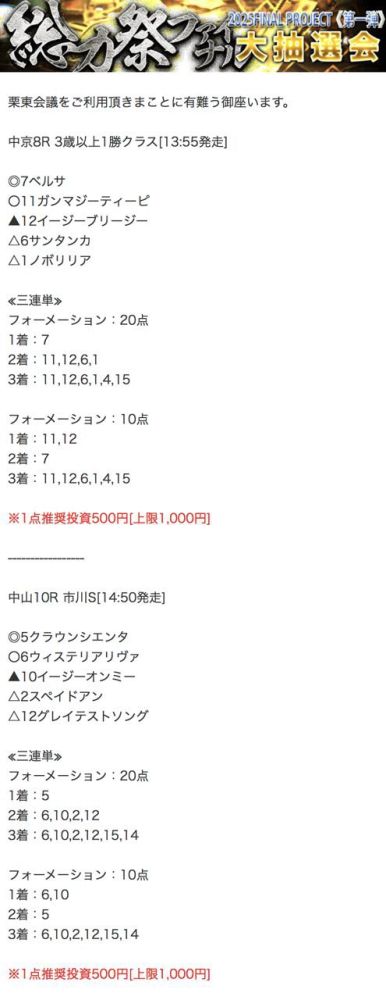 | プラン名 | 払戻金額 | 買い目公開画面 |