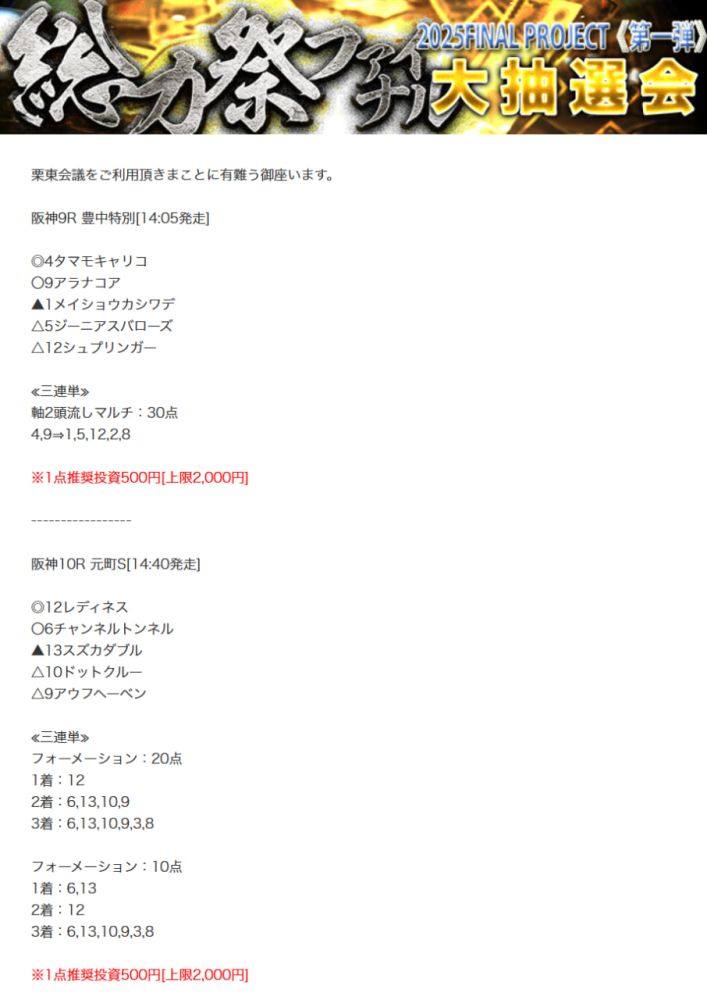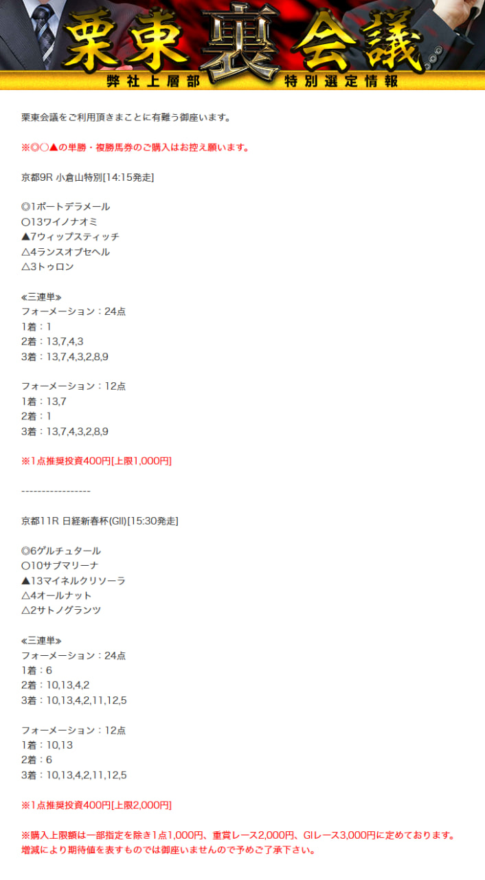 栗東会議という競馬予想サイトを利用して利益を出す事ができたという口コミ評価レビューを購入したので、投稿内容をまとめたものを掲載しています。
