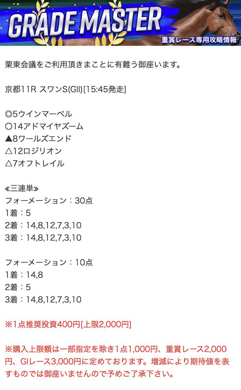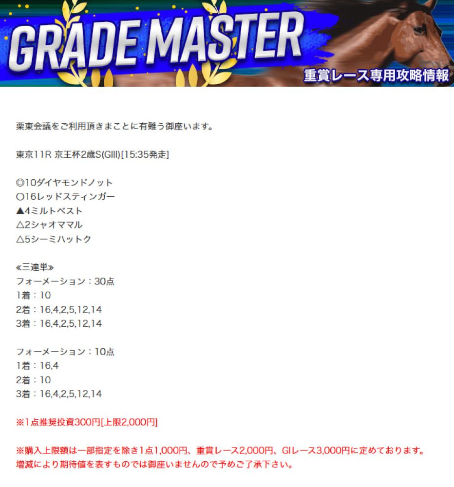 11月から栗東会議の有料予想を検証してきました。
