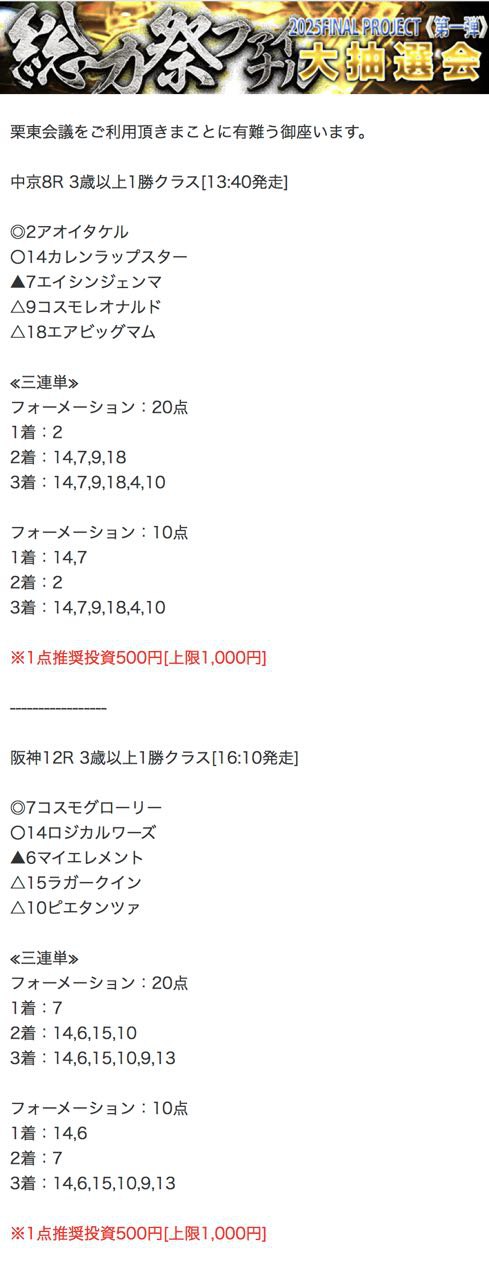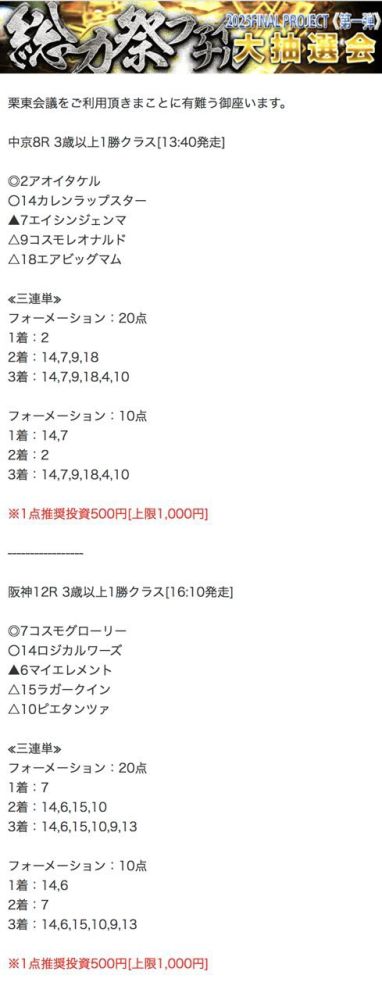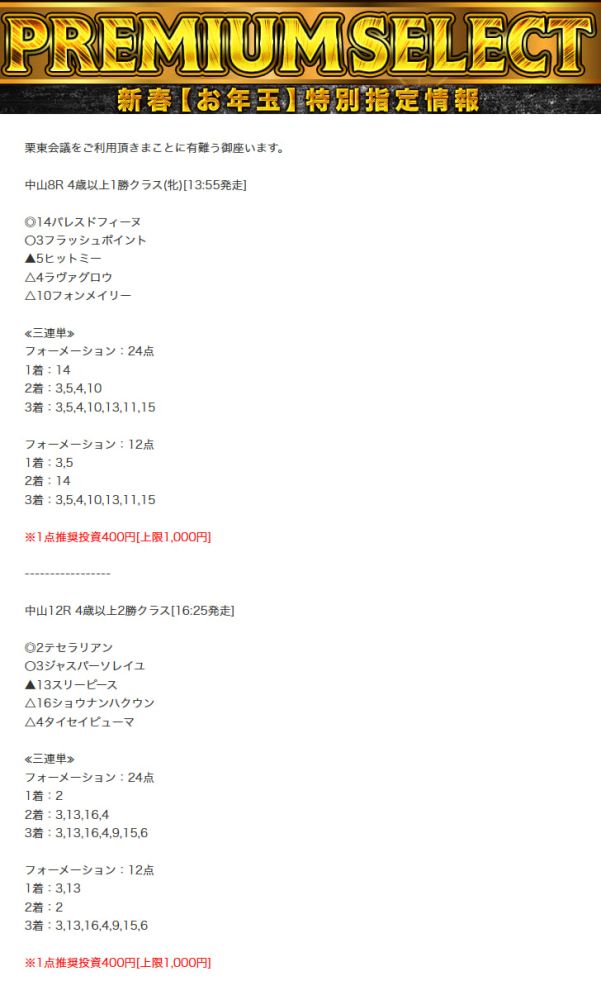 | プラン名 | 払戻金額 | 買い目公開画面 |