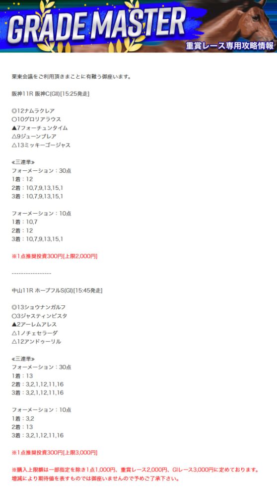 栗東会議という競馬予想サイトを利用して利益を出す事ができたという口コミ評価レビューを購入したので、投稿内容をまとめたものを掲載しています。