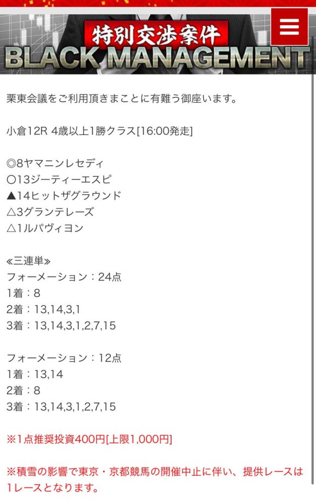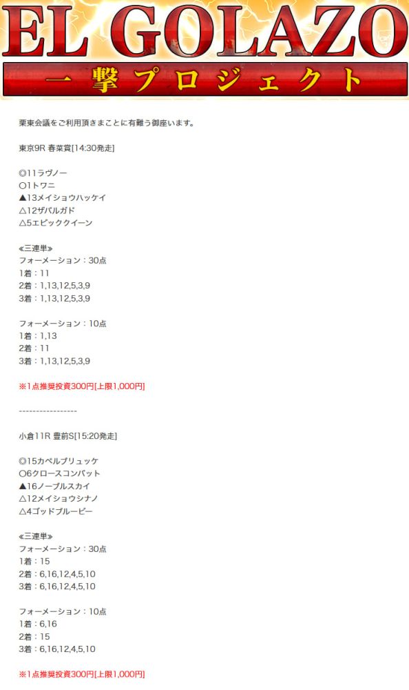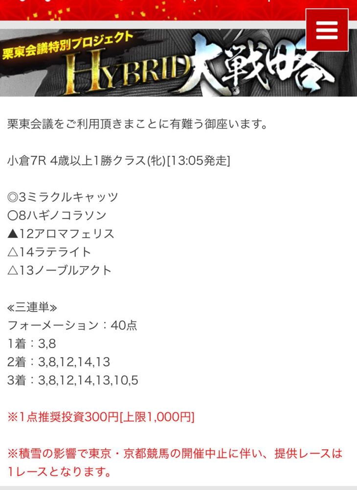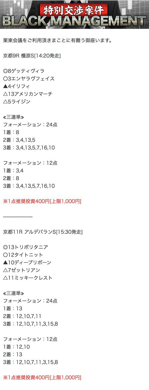 もしこのページをご覧のあなたが、ここで取り上げた栗東会議の予想を利用して儲けを出しているという事であれば、ぜひご連絡下さい。