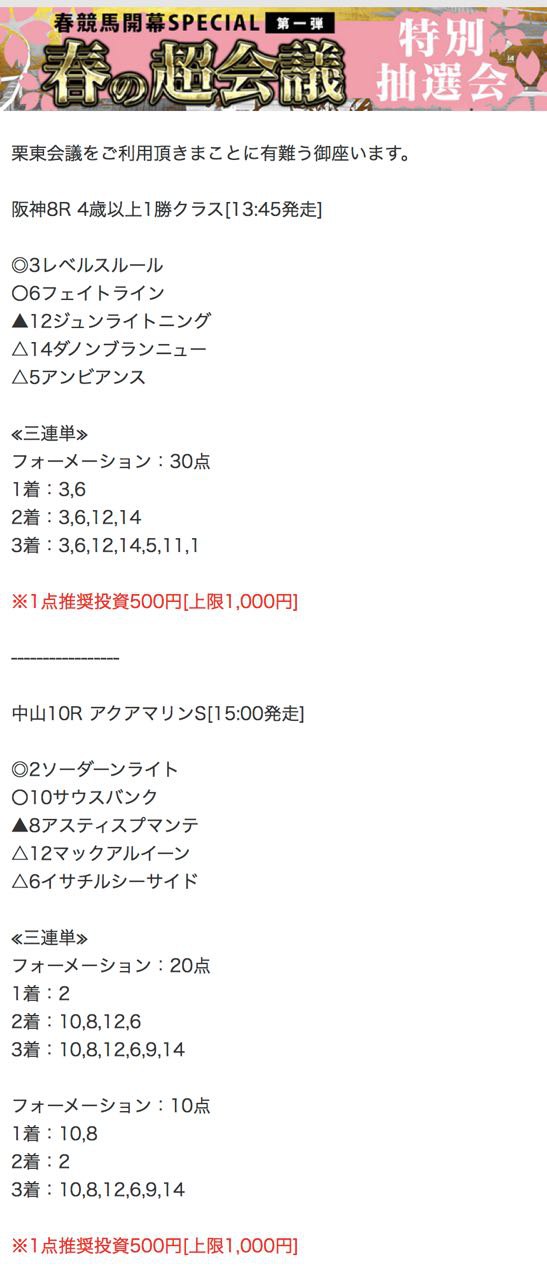 以前、栗東会議の無料予想買い目を確認しましたが、あれからしばらく時が経ちました。