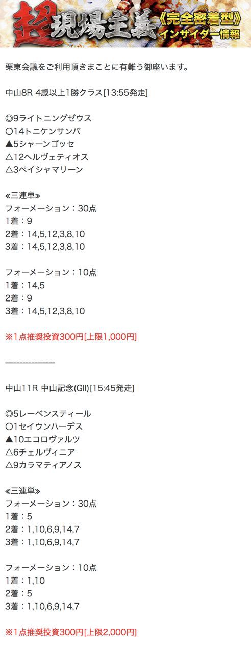 栗東会議の予想を利用して儲けたという人はぜひ、口コミを買い取らせて下さい。