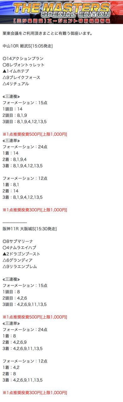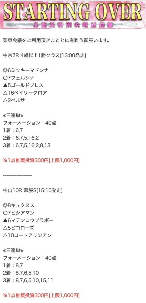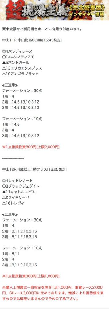 もしこのページをご覧のあなたが、ここで取り上げた栗東会議の予想を利用して儲けを出しているという事であれば、ぜひご連絡下さい。
