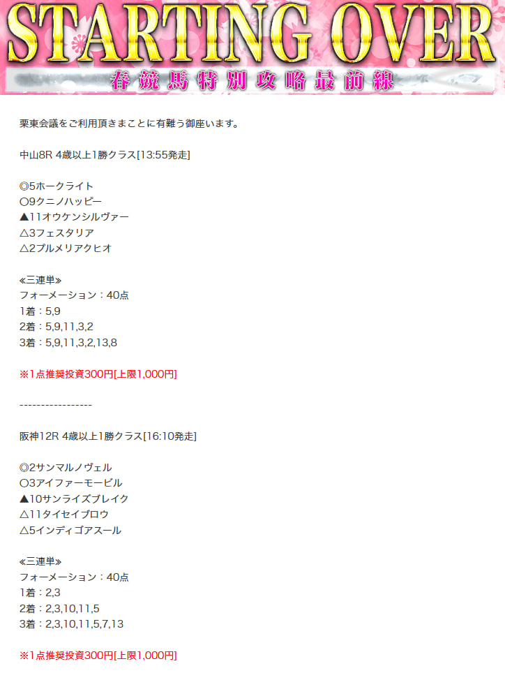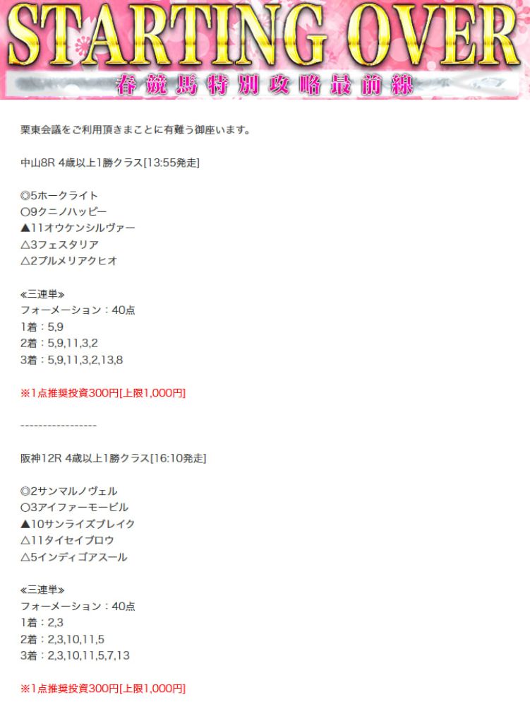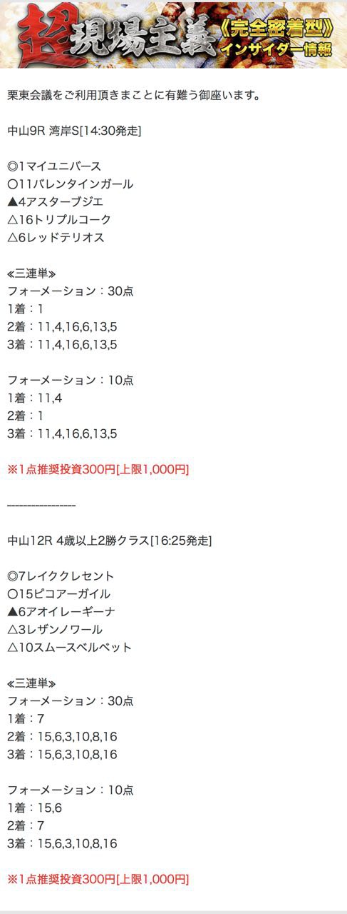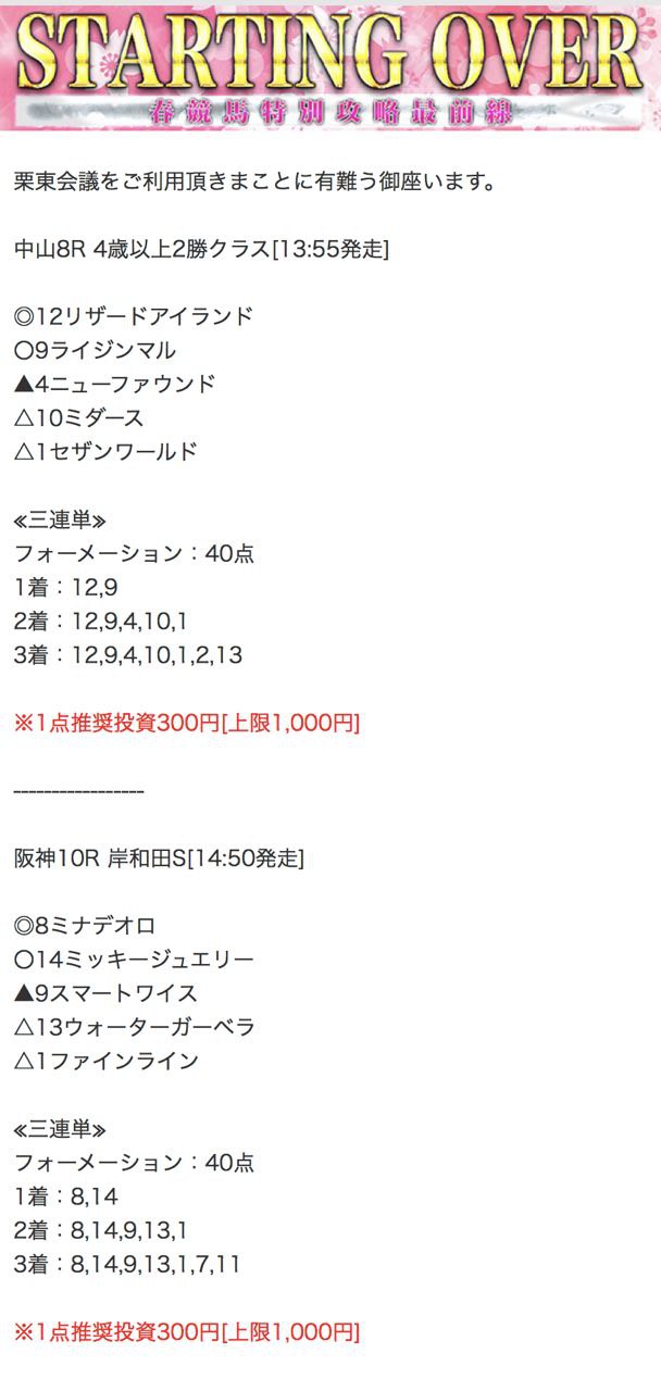 今回、過去に口コミの買い取り実績のある栗東会議の判定を行うべく有料予想プランに参加をしました。