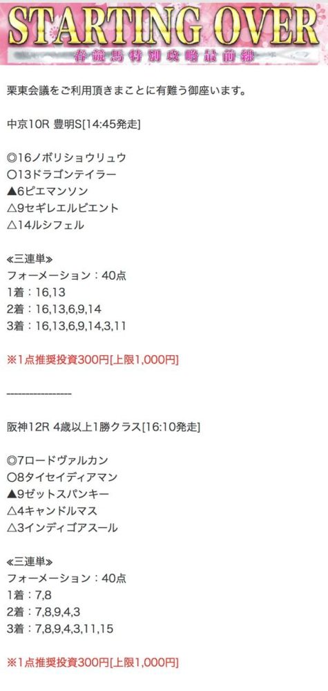 もしこのページをご覧のあなたが、ここで取り上げた栗東会議の予想を利用して儲けを出しているという事であれば、ぜひご連絡下さい。