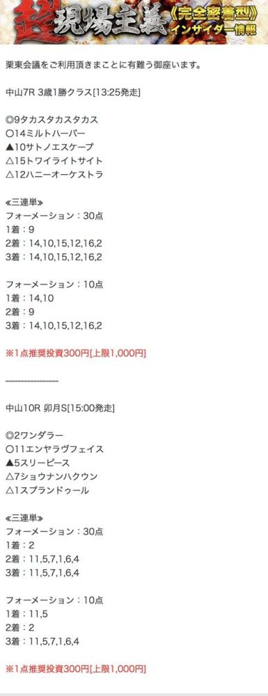 もしこのページをご覧のあなたが、ここで取り上げた栗東会議の予想を利用して儲けを出しているという事であれば、ぜひご連絡下さい。