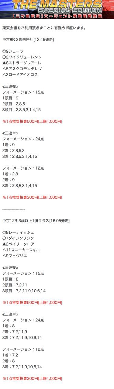 もしこのページをご覧のあなたが、ここで取り上げた栗東会議の予想を利用して儲けを出しているという事であれば、ぜひご連絡下さい。