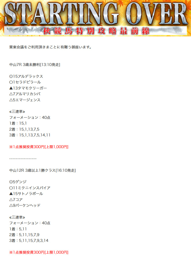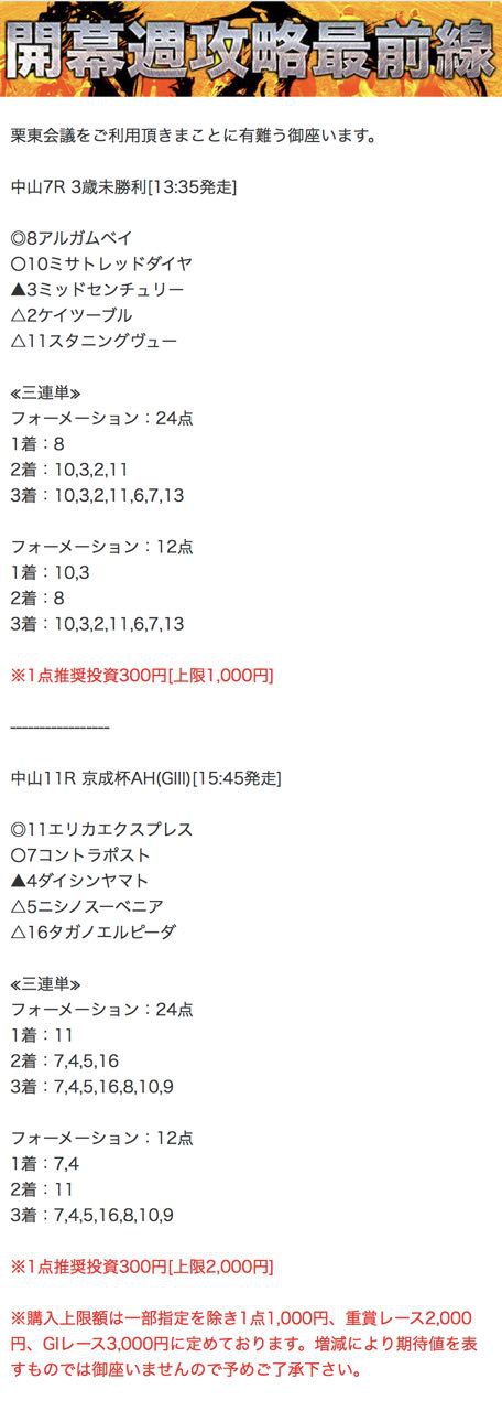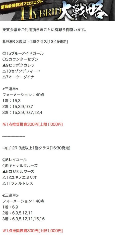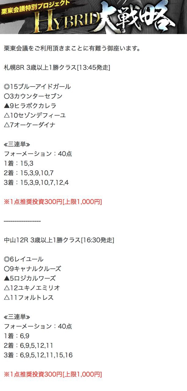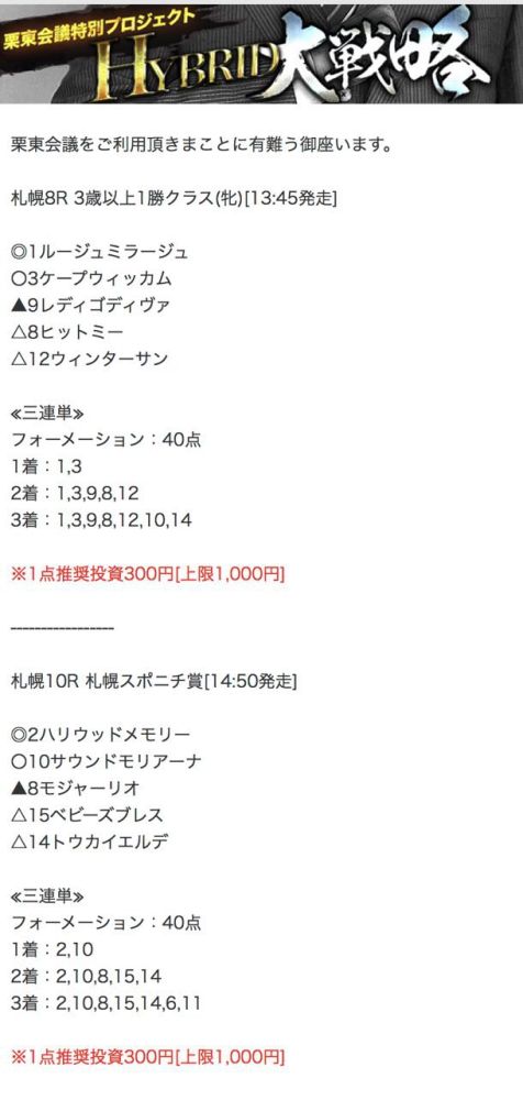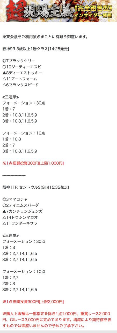 もしこのページをご覧のあなたが、ここで取り上げた栗東会議の予想を利用して儲けを出しているという事であれば、ぜひご連絡下さい。