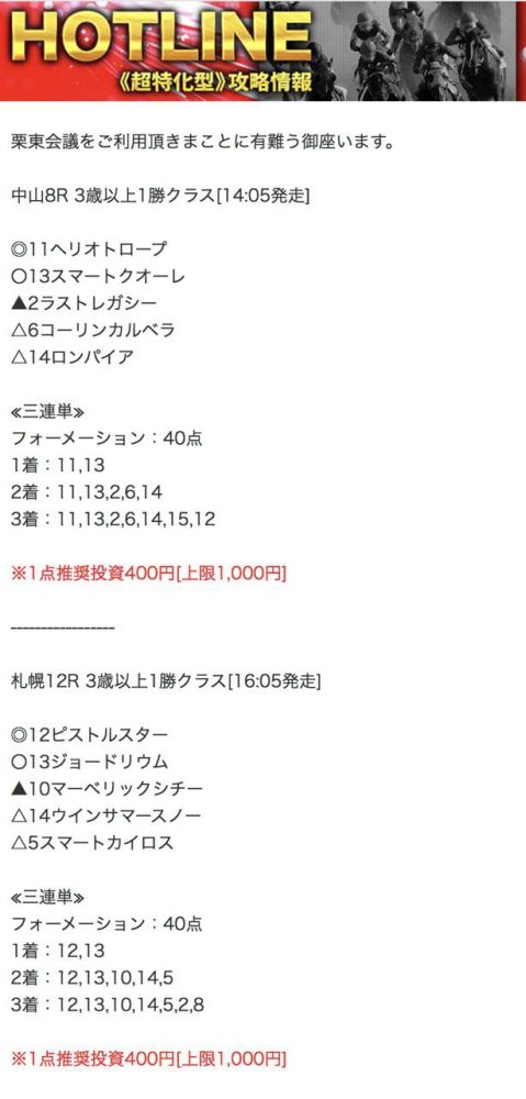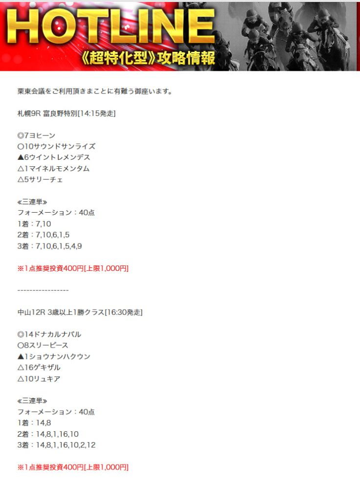 HOTLINEの買い目公開します