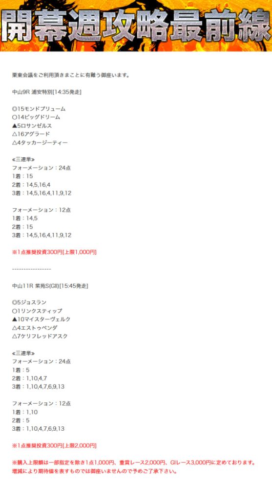 - ・無料コンテンツ+販売されている予想プランを簡単に紹介している。