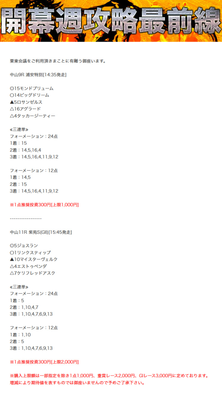 以前、栗東会議の無料予想買い目を確認しましたが、あれからしばらく時が経ちました。