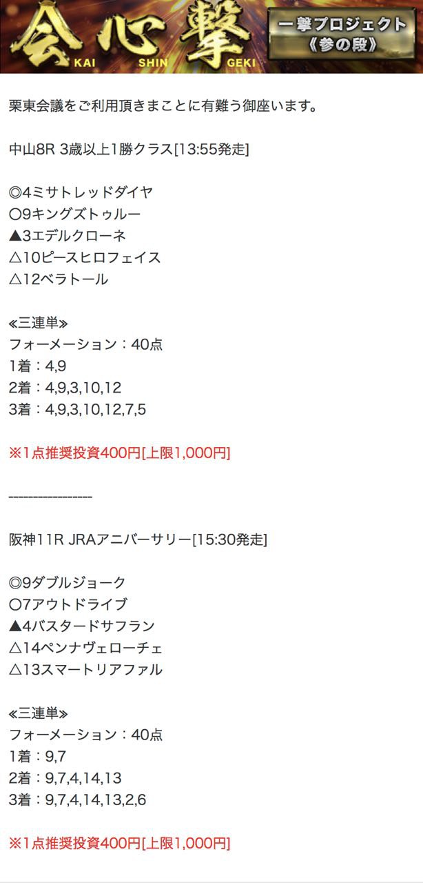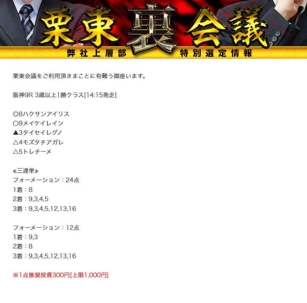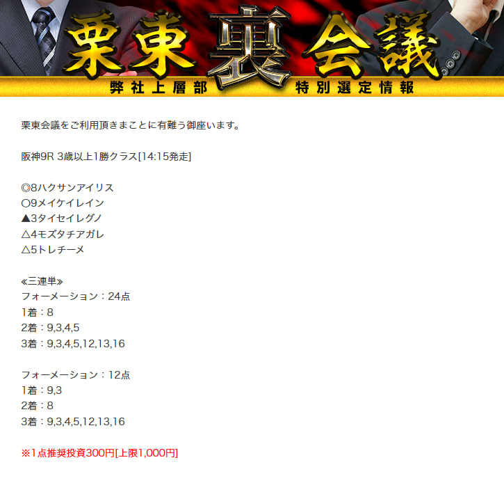 今回、過去に口コミの買い取り実績のある栗東会議の判定を行うべく有料予想プランに参加をしました。