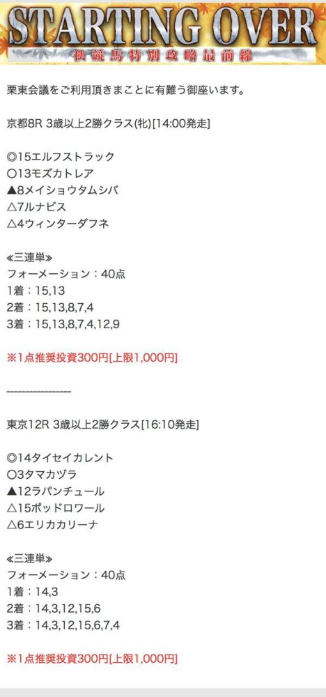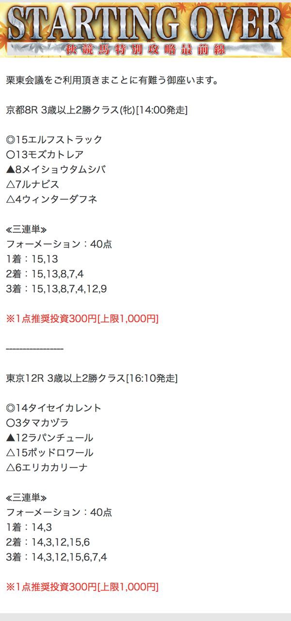 以前、栗東会議の無料予想買い目を確認しましたが、あれからしばらく時が経ちました。