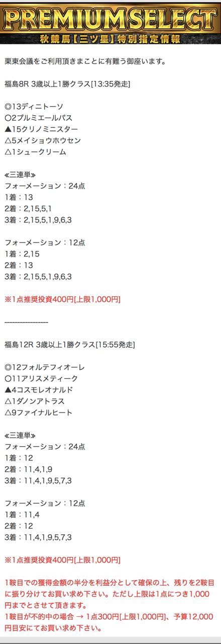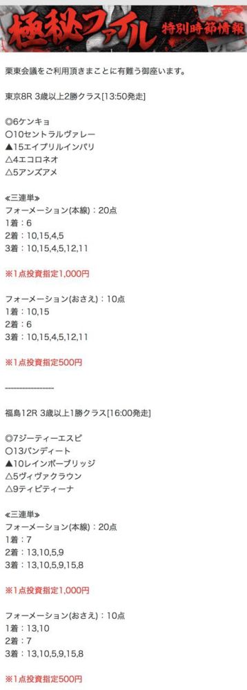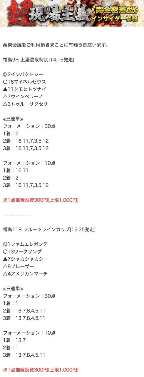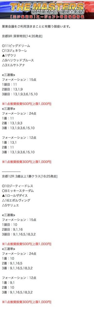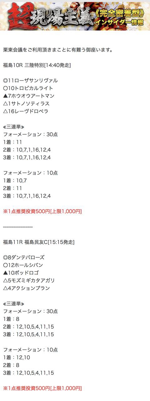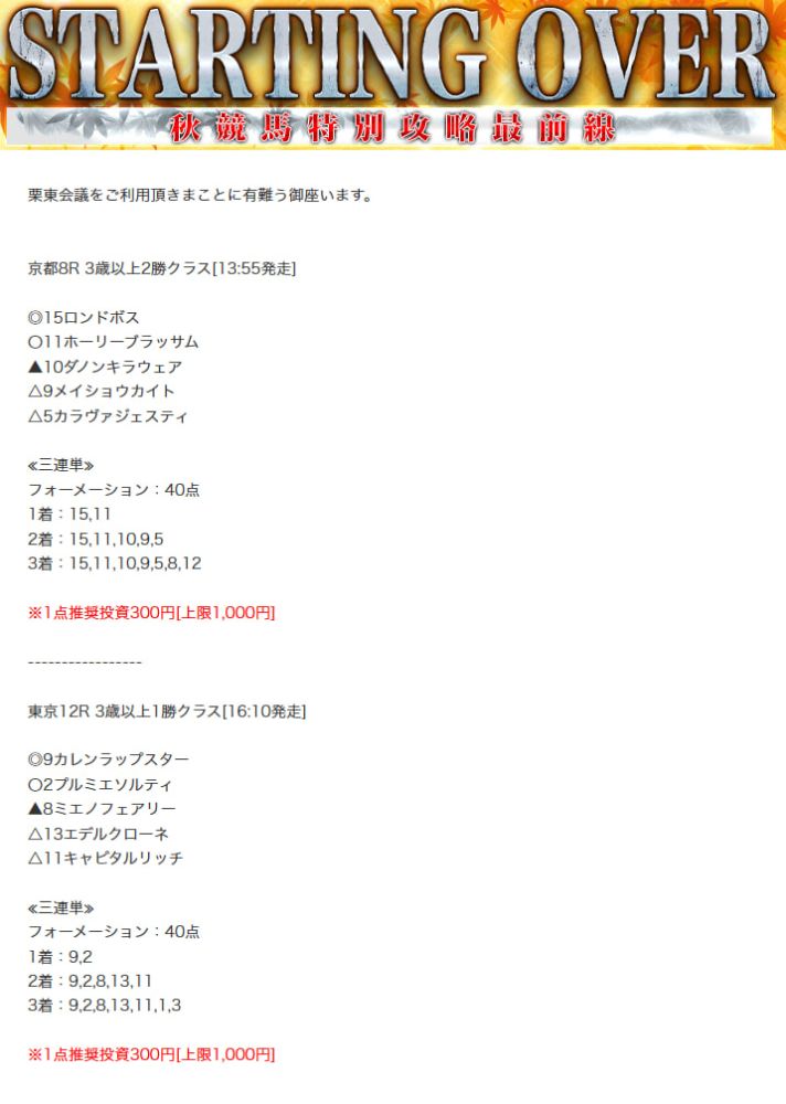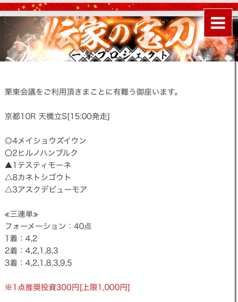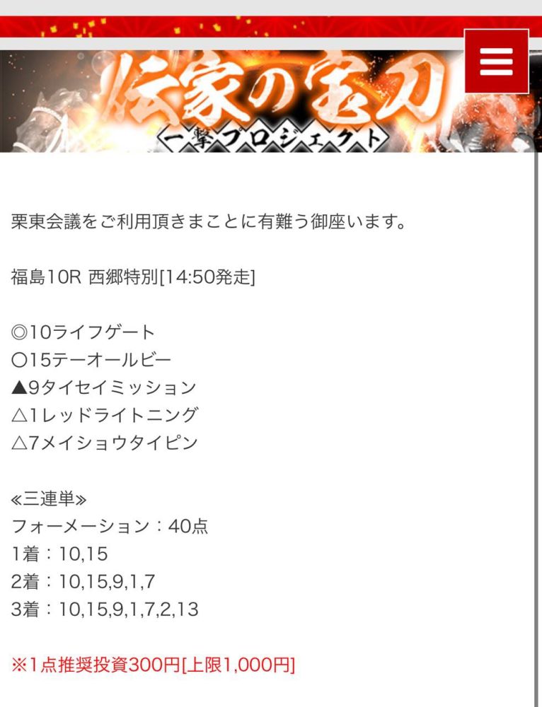 もしこのページをご覧のあなたが、ここで取り上げた栗東会議の予想を利用して儲けを出しているという事であれば、ぜひご連絡下さい。
