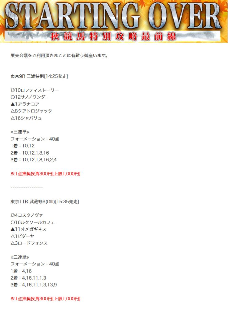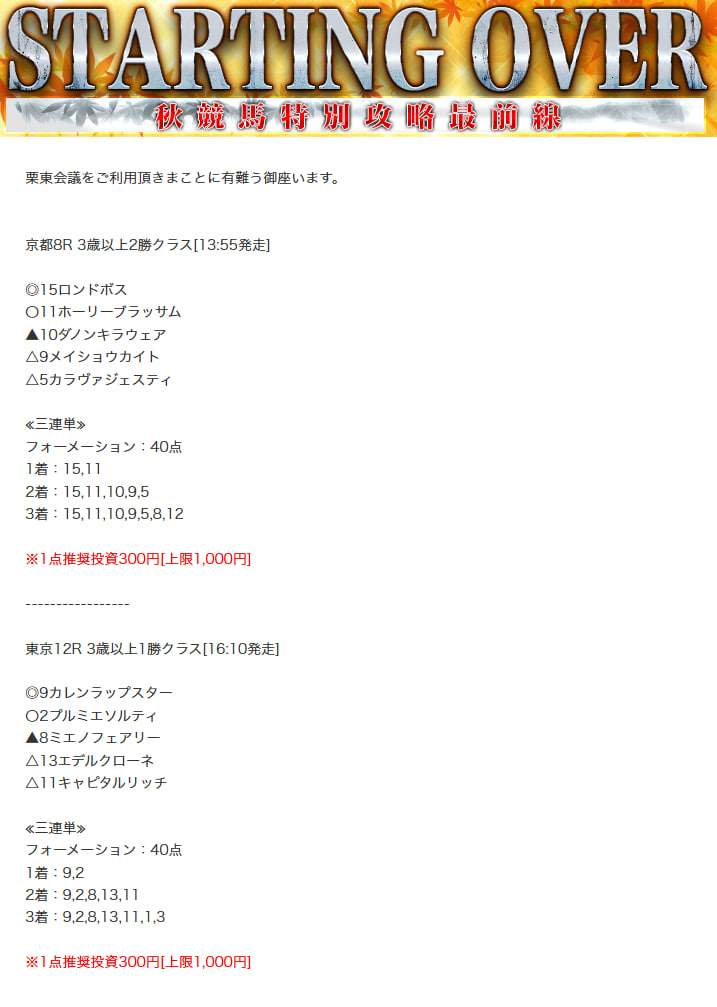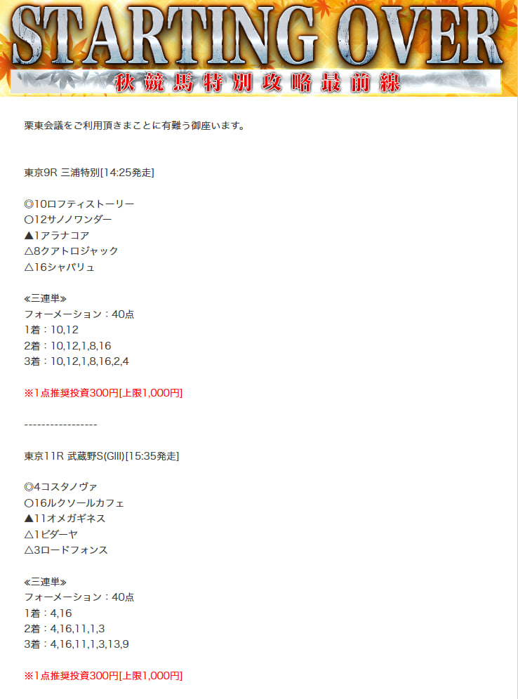以前、栗東会議の無料予想買い目を確認しましたが、あれからしばらく時が経ちました。
