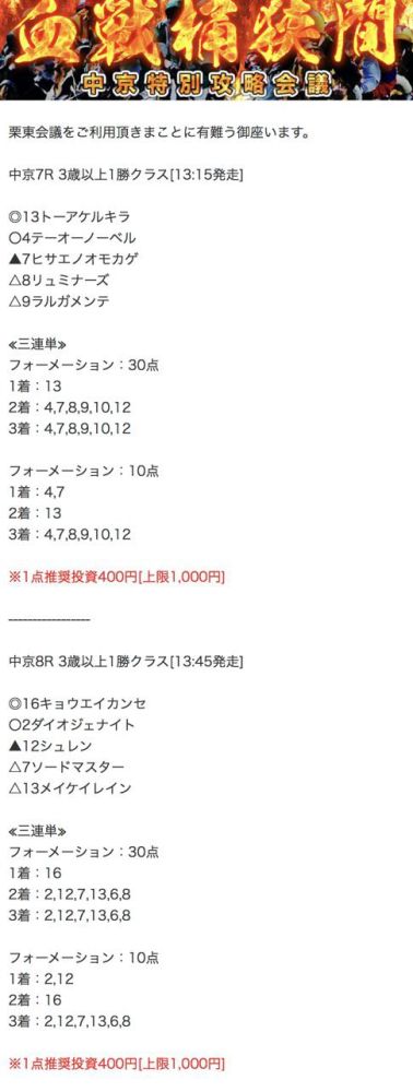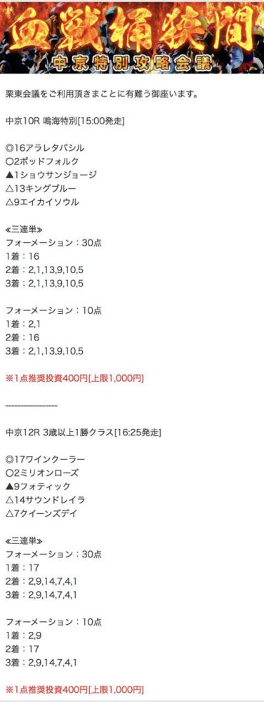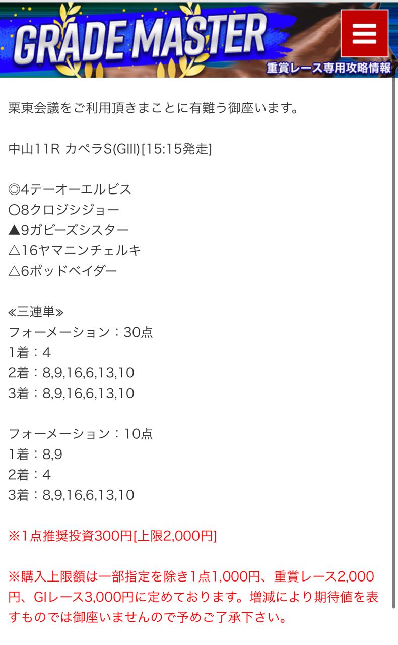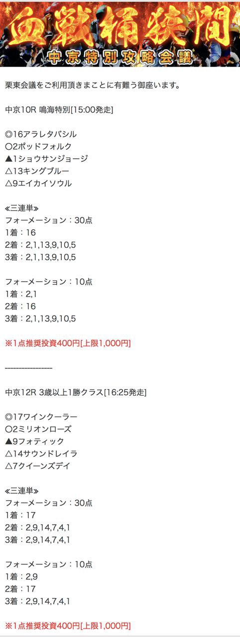 もしこのページをご覧のあなたが、ここで取り上げた栗東会議の予想を利用して儲けを出しているという事であれば、ぜひご連絡下さい。