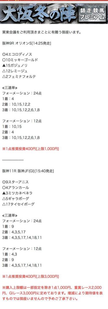 今回、過去に口コミの買い取り実績のある栗東会議の判定を行うべく有料予想プランに参加をしました。